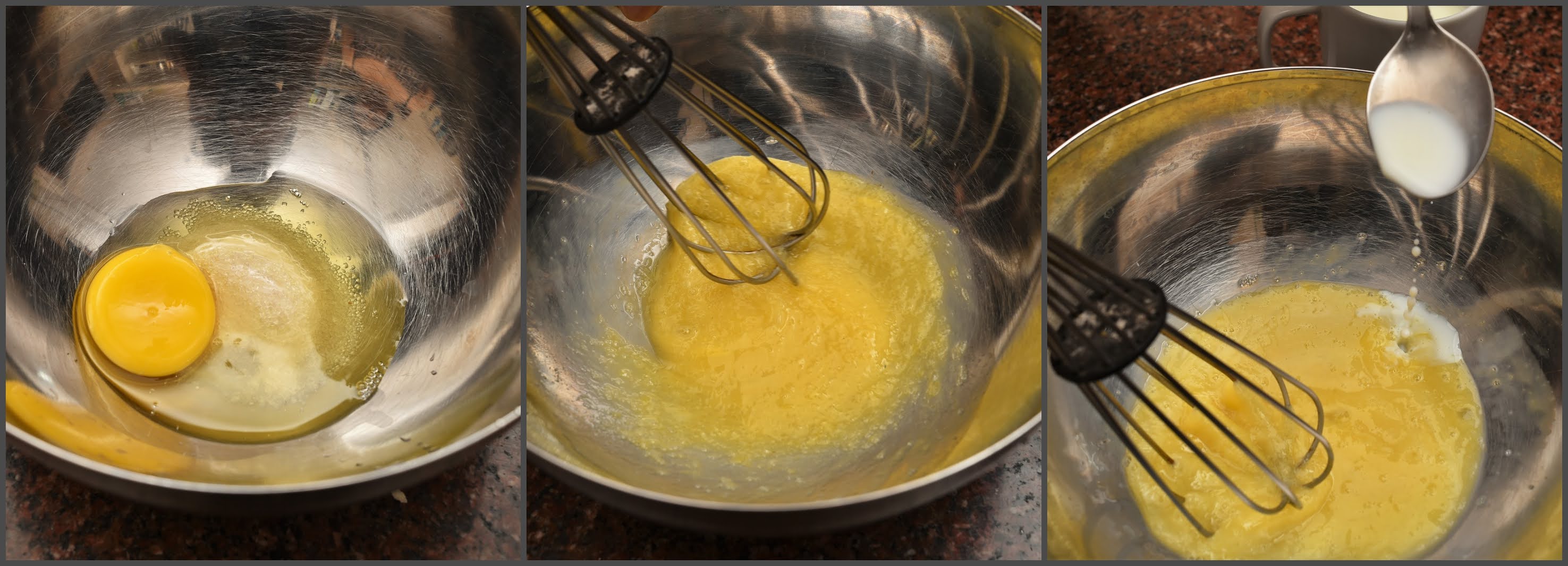 Step 1: In a mixing bowl break one egg, add sugar, and beat it. Keep remaining eggs aside for later. Now add hot milk into it, but don’t add the entire milk at a time. Adding hot milk suddenly will cook the egg. So first add one spoon of milk and whisk, then add a couple of more spoons of milk while whisking and slowly add the entire milk and continue whisking. Crush the barley flakes with hand and add it into the bowl. Add 2/3 drops of vanilla essence and whisk it well for a minute.