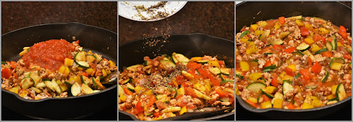 After 2-3 minutes add the tomato puree for the red sauce. Add dried spices (basil & oregano), mix it well and cover it for another 5-8 minutes. If required add half a cup of water.