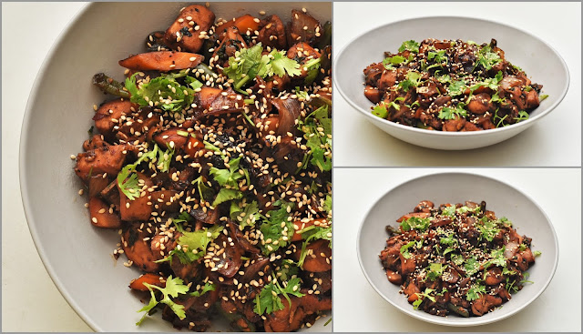 Once done garnish with some more chopped coriander and roasted sesame seeds. Serve hot with fried/ flavoured rice or noodles.