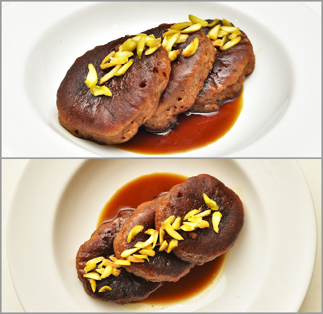 Step 4: Once all the cakes are in the jaggery syrup, put the pan on the gas once again, warm it for a minute and turn the gas off. Cover it at least for an hour and let the cakes absorb the syrup completely. Keep turning the cakes occasionally. It will make the cakes softer, and the syrup will reach inside the cakes to make it soft and sweeter. Once done garnish with some dry fruits and serve.