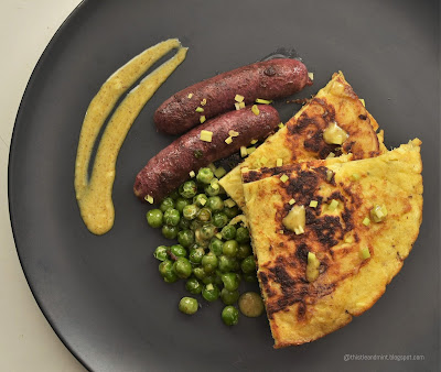 You can cut the omelette in slices if you want while serving. Toss some scallions over it and serve hot with some tossed veggies and honey mustard sauce.